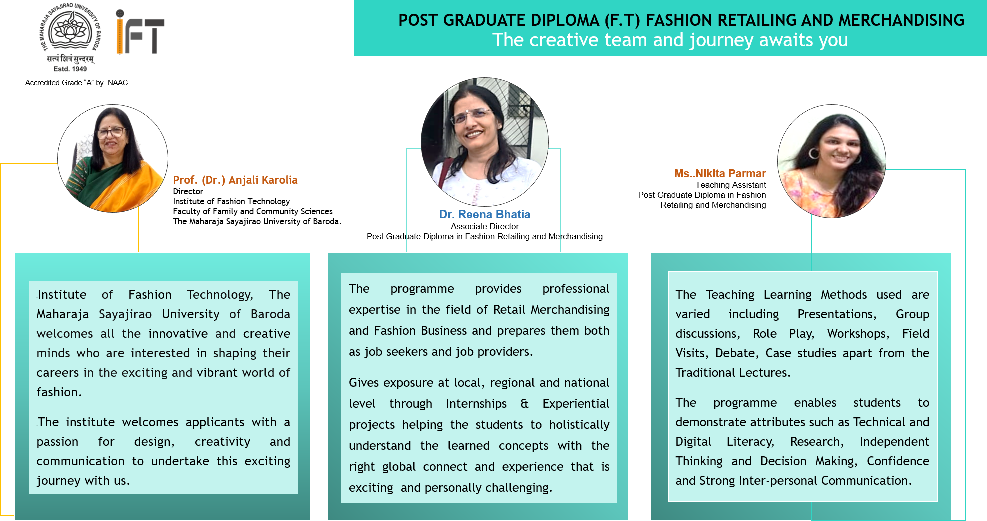 Qualification: P. G. (Fashion Design & Clothing Technology), B. Sc. (C.T)